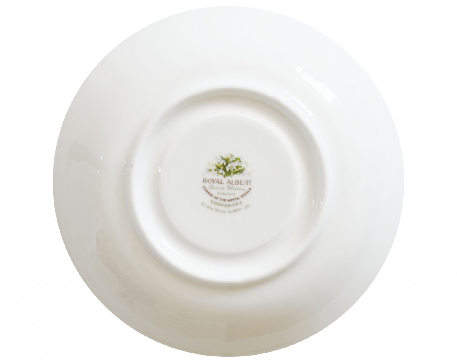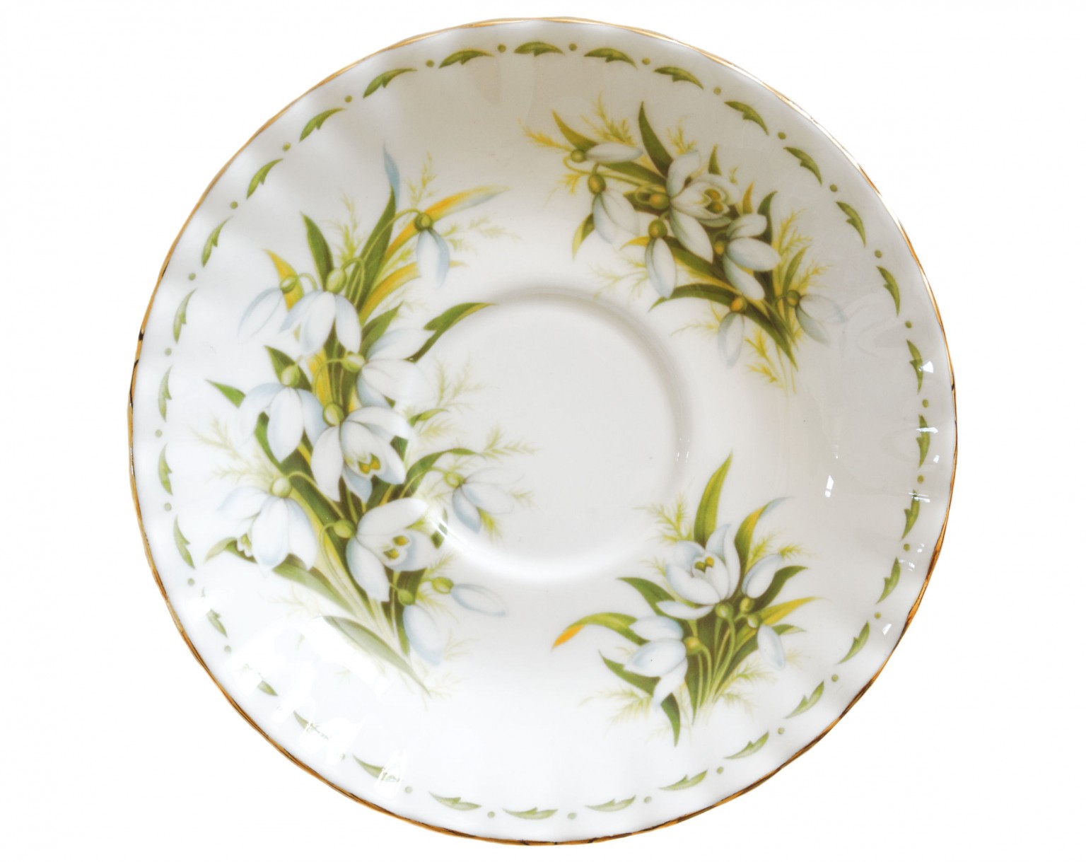 A very pretty tea cup and saucer from the Flower of the Month Series produced by Royal Albert featuring the month of January and the Snowdrop.