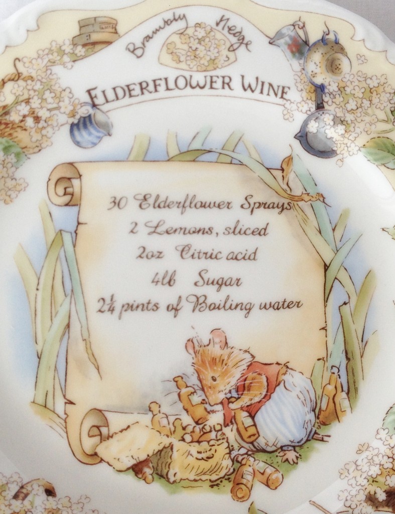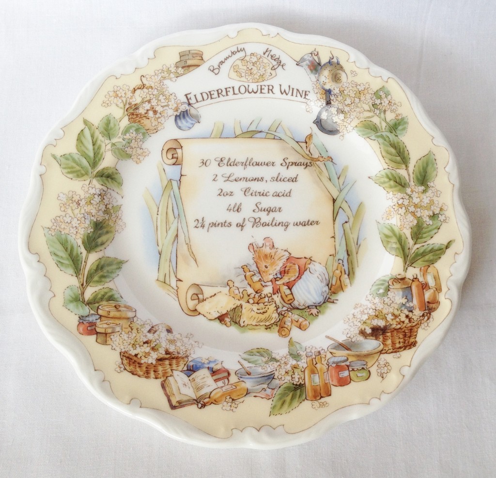 The 'Elderflower Wine' collectors recipe plate designed by Jill Barklem from the Brambly Hedge Recipe Plate Collection produced by Royal Doulton.