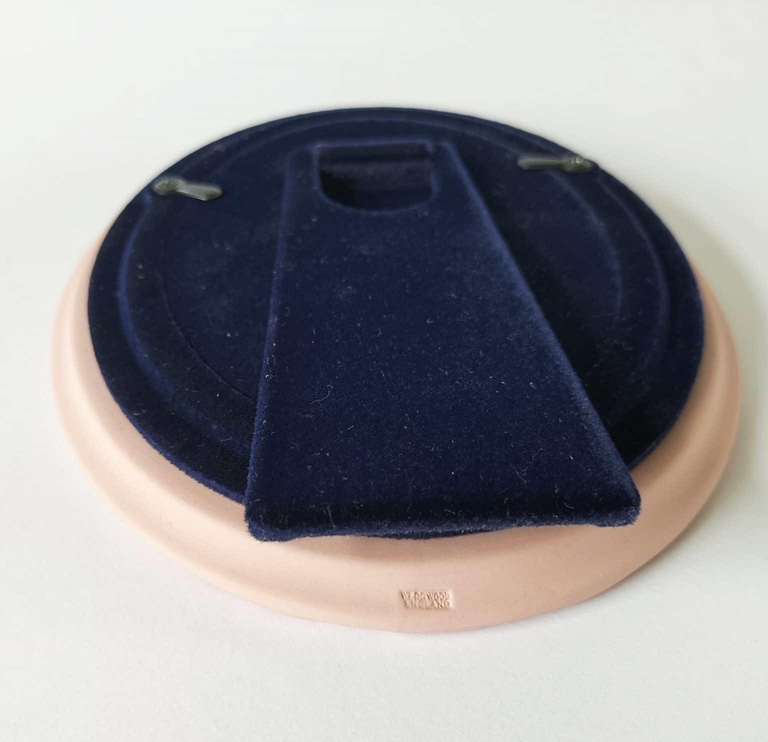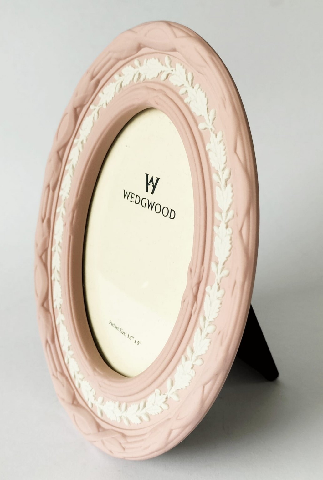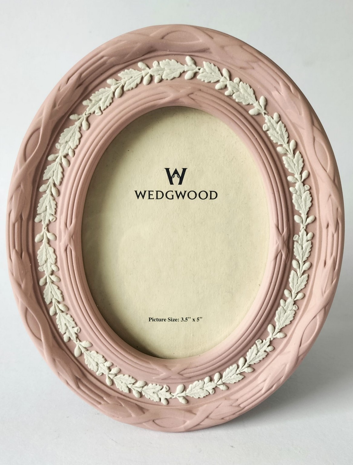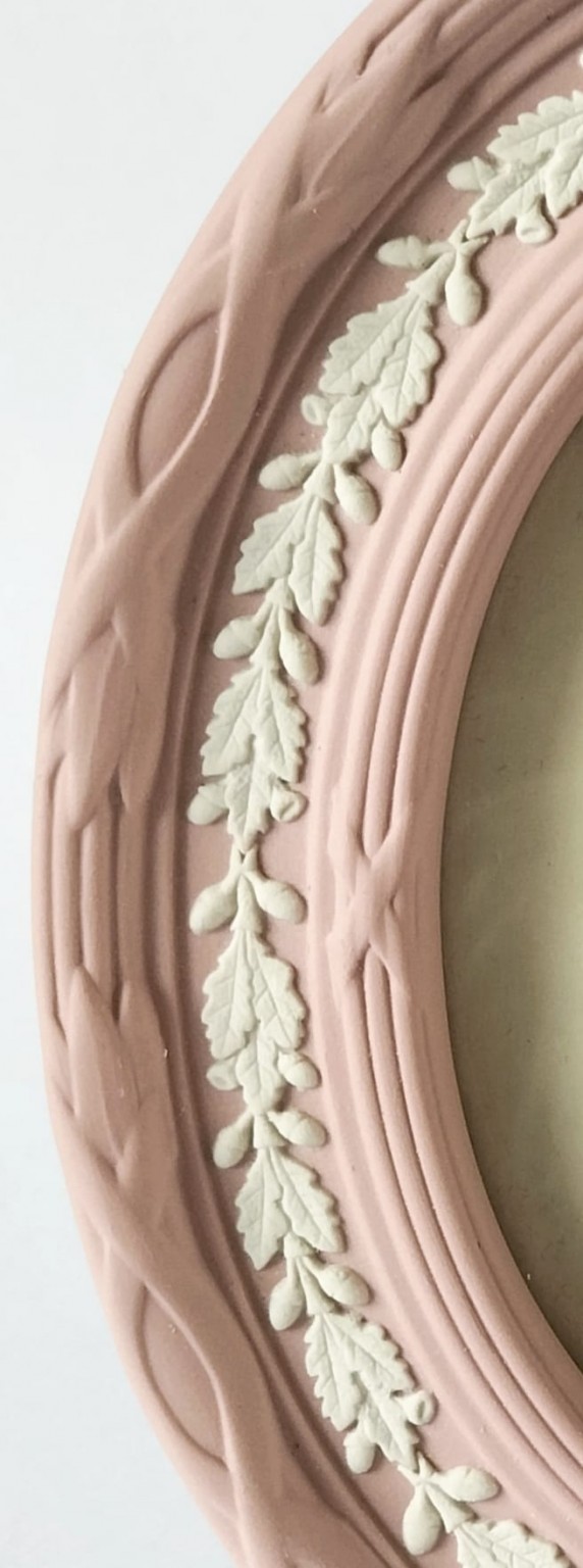 An oval Wedgwood pink Jasperware photograph frame.