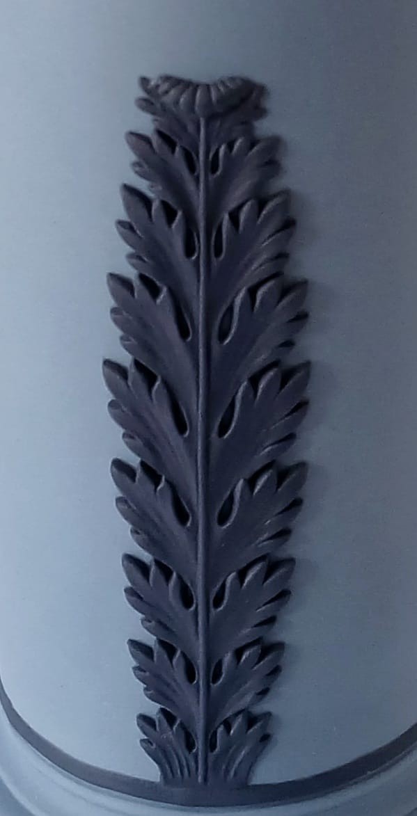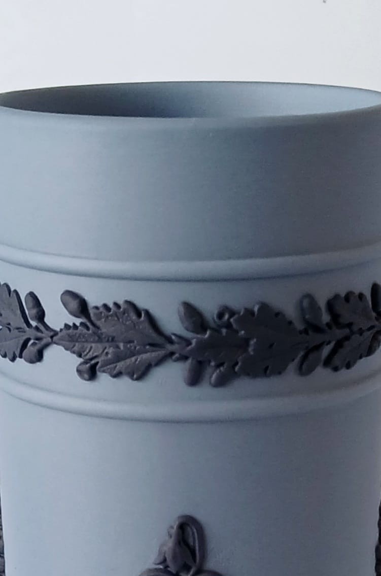 A Wedgwood Portland Blue on blue jasperware Acanthus and Bellflower spill vase.