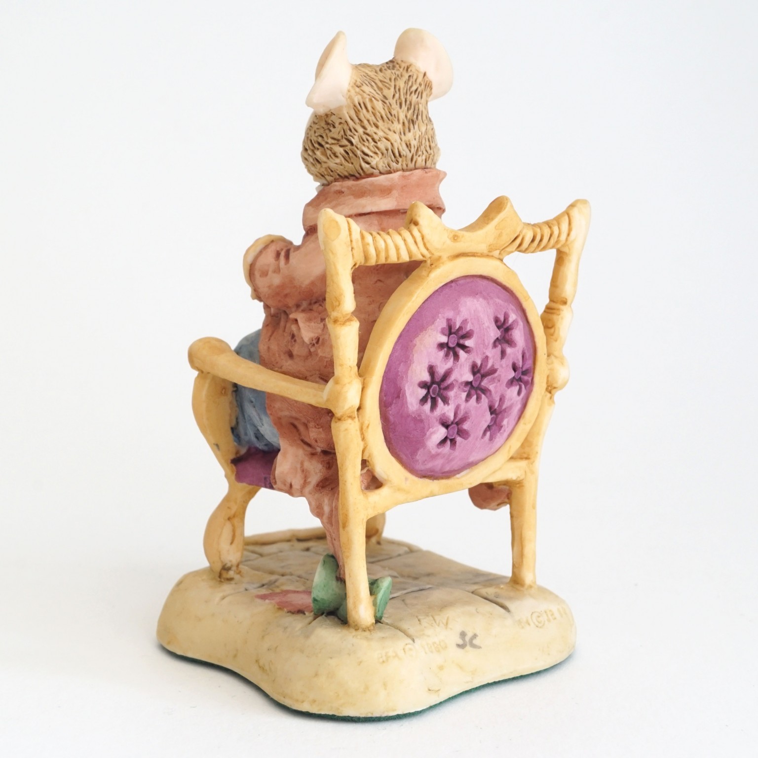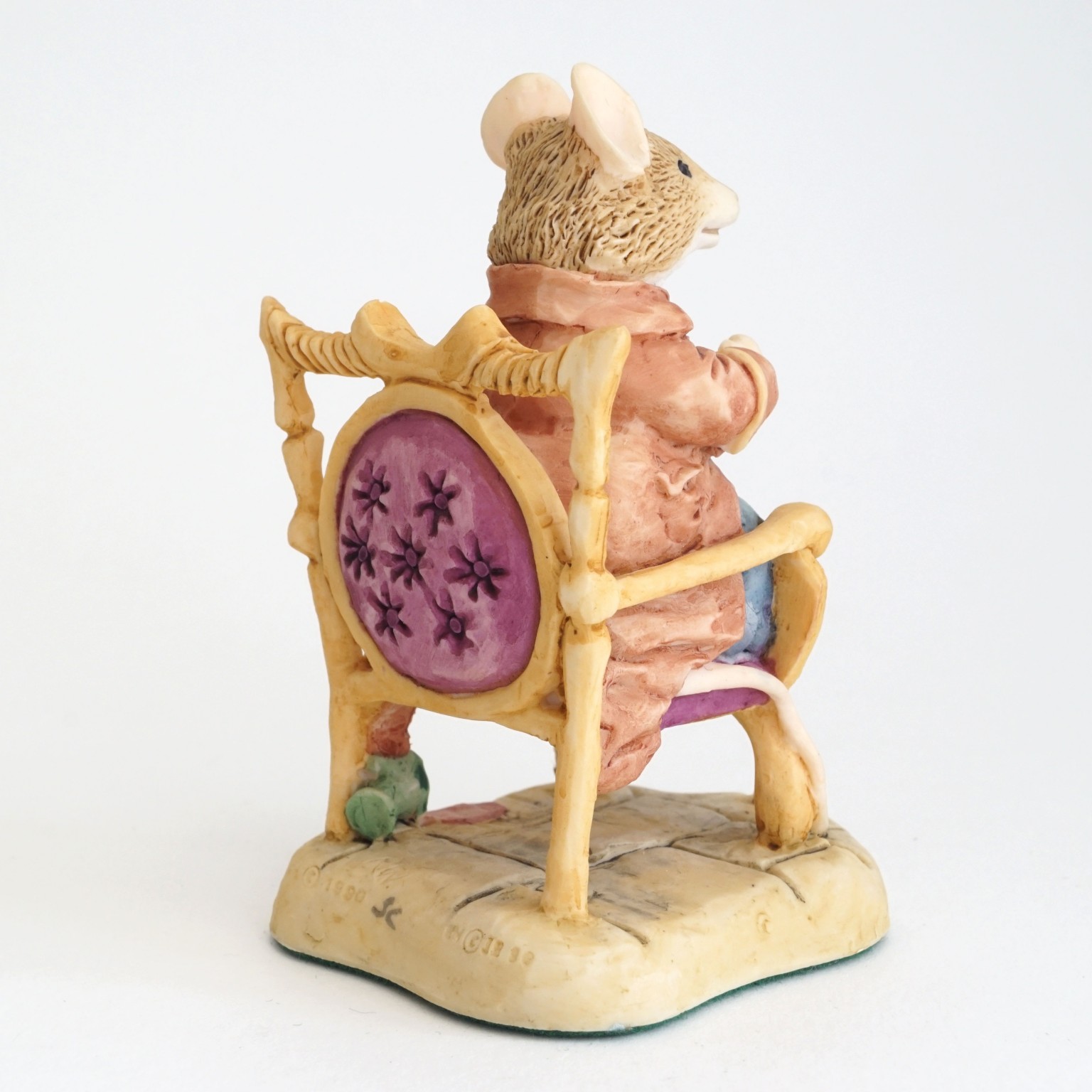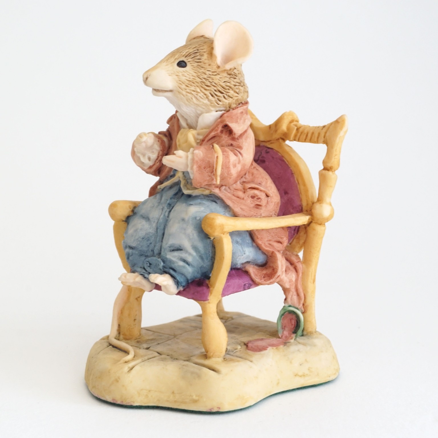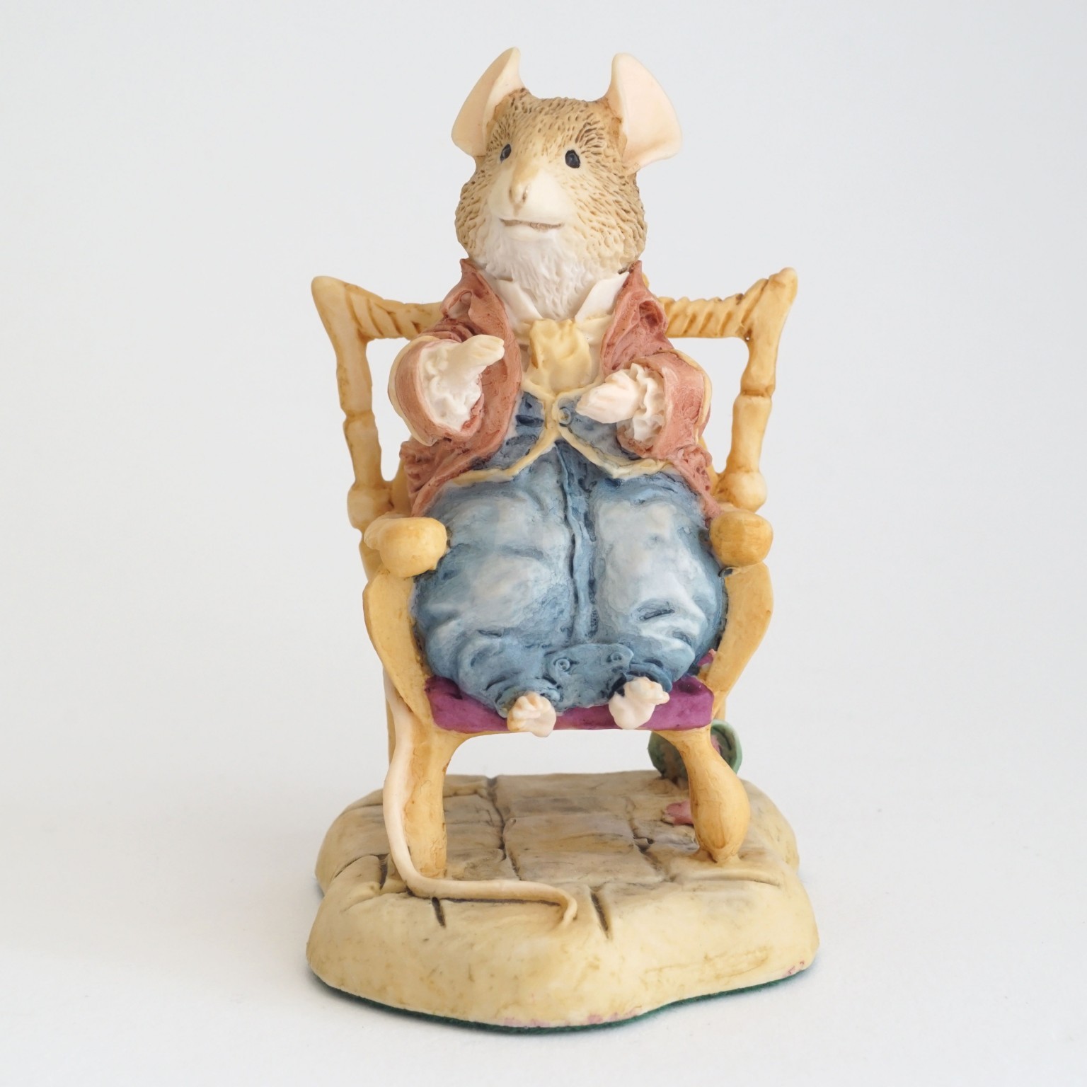 A "Lord Woodmouse in a Chair" BH22 figurine from the Brambly Hedge Collection, produced by Border Fine Arts. This figure is part of the Midwinter Collection.