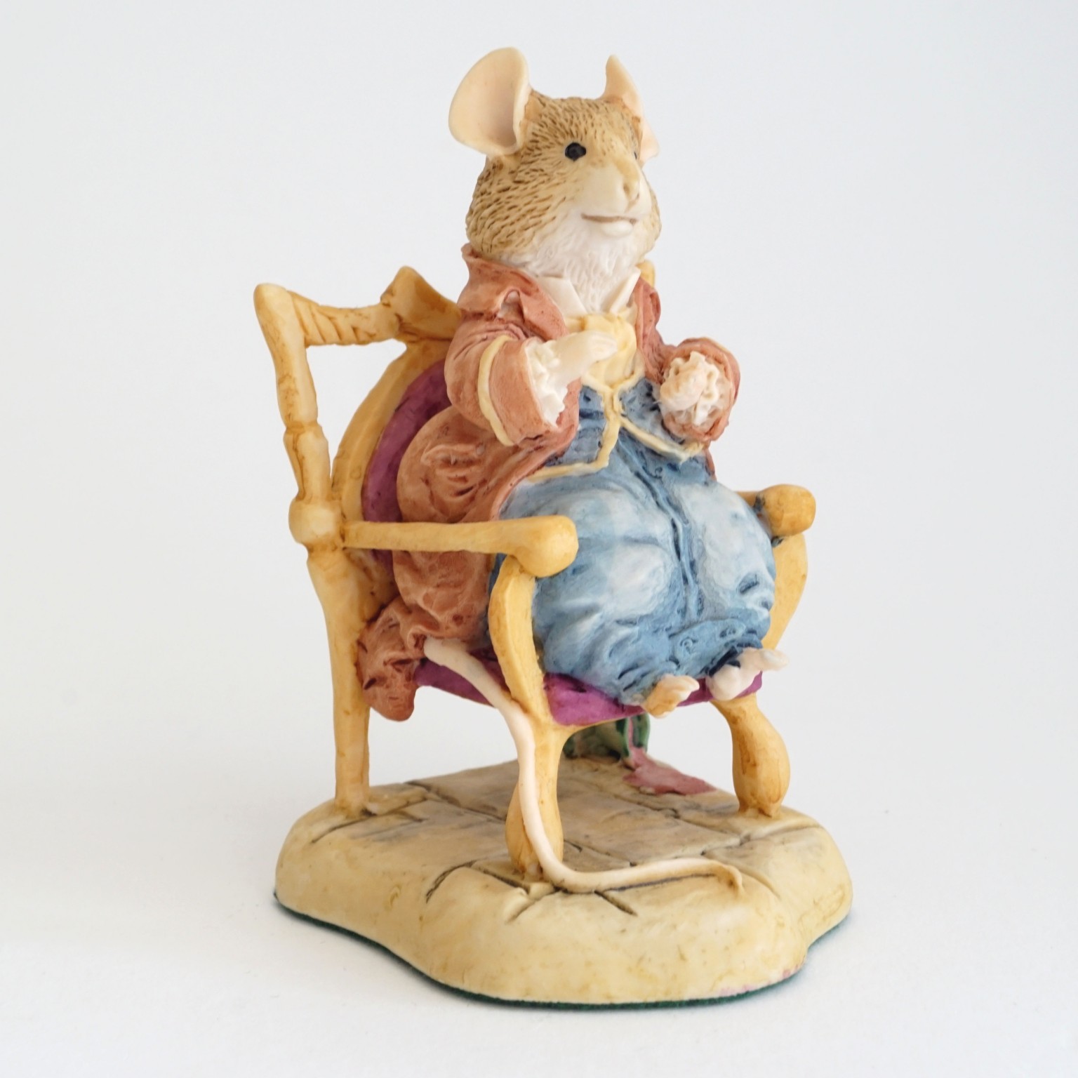 The figurine features Lord Woodmouse sat in a chair while he is entertained by the young mice of Brambly Hedge.
