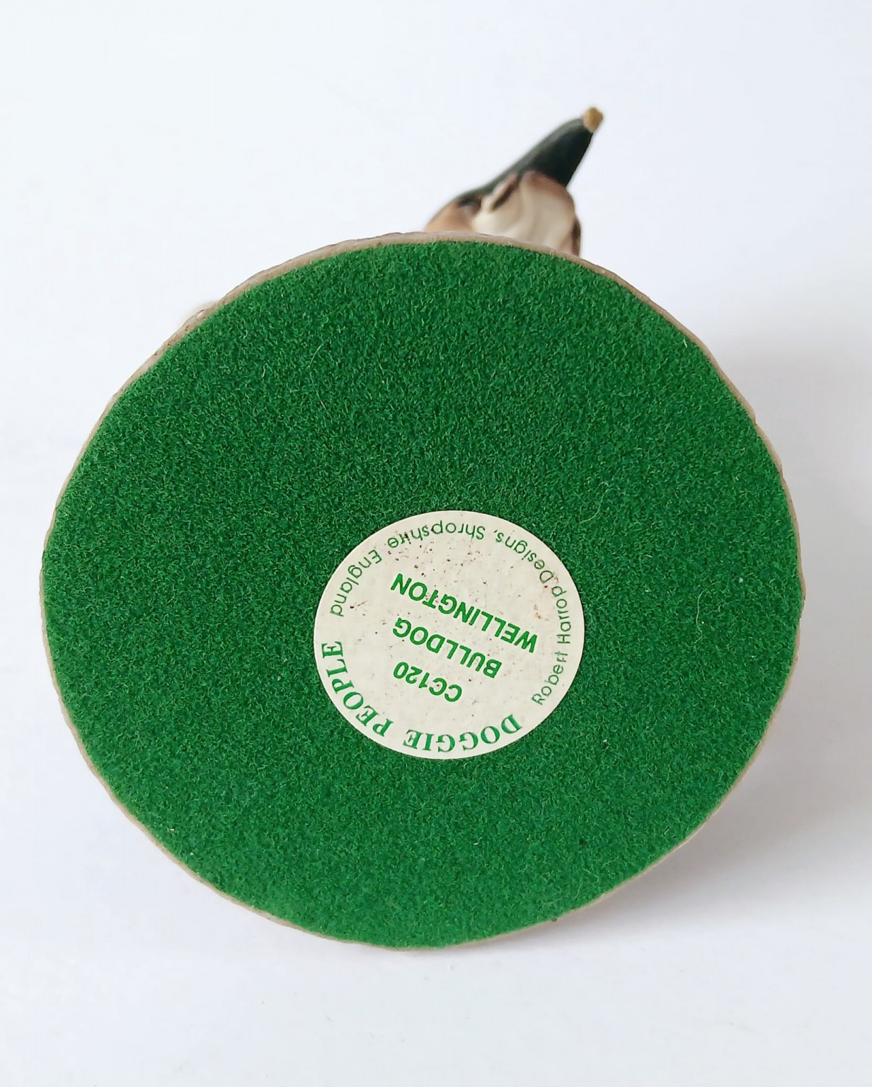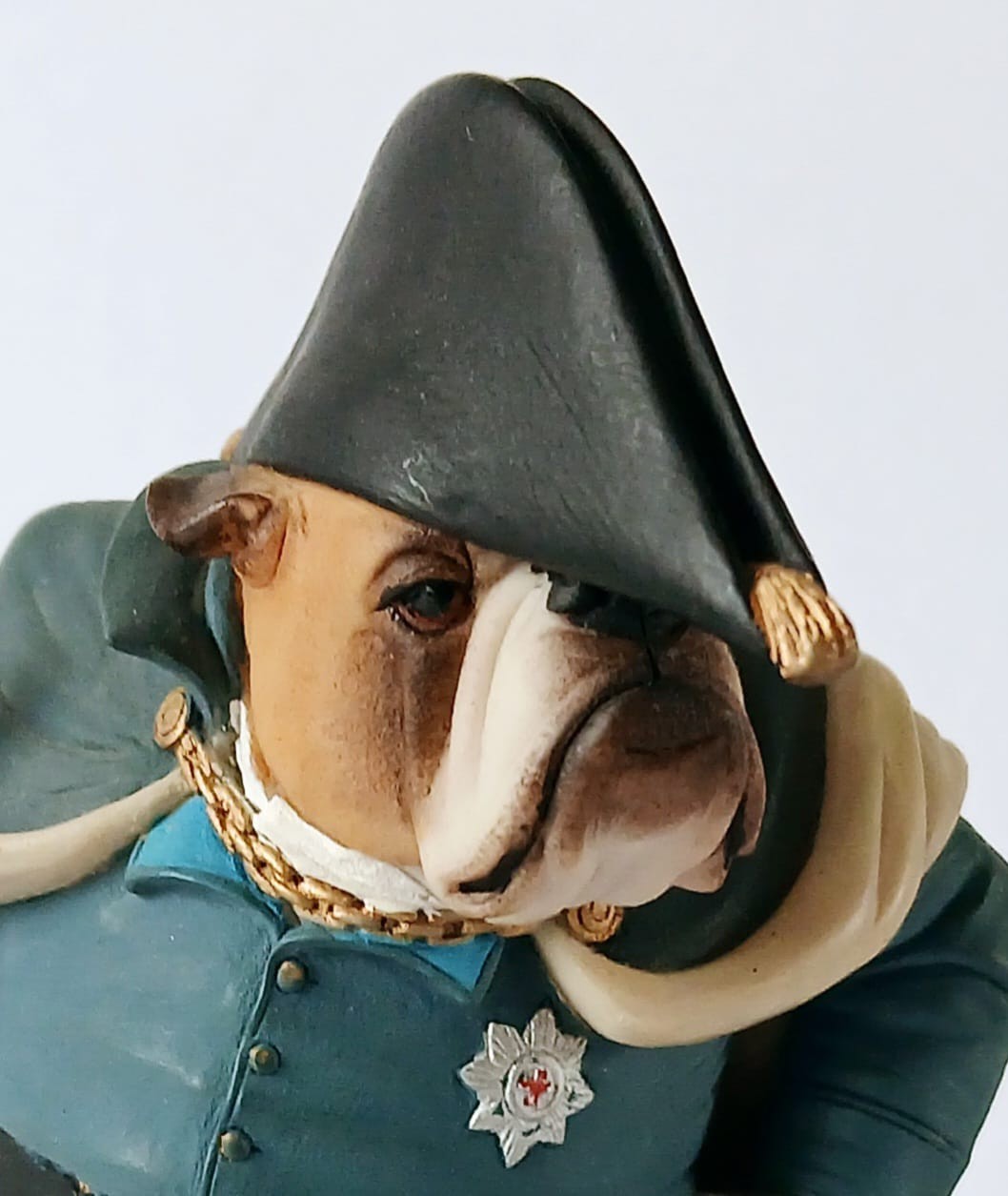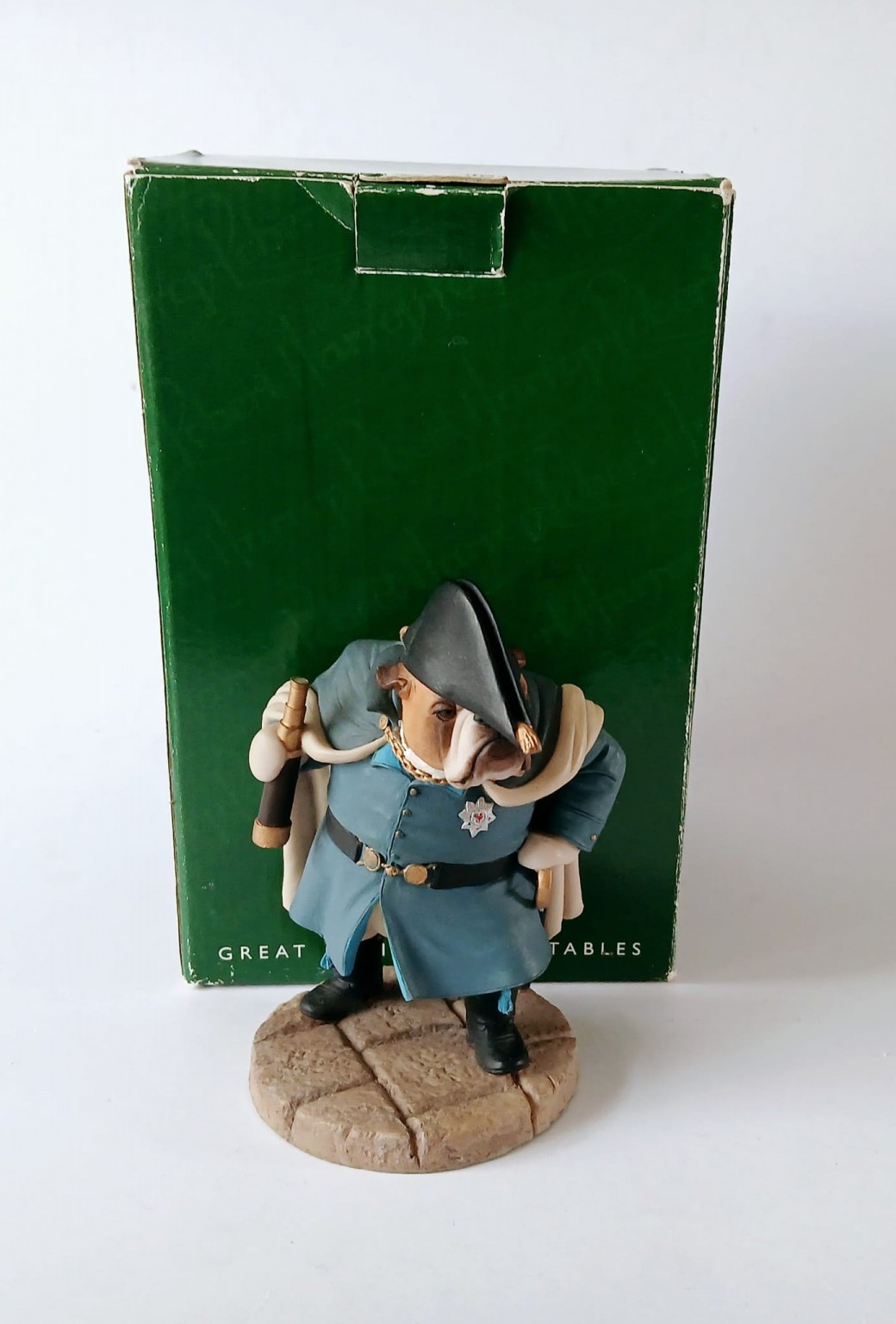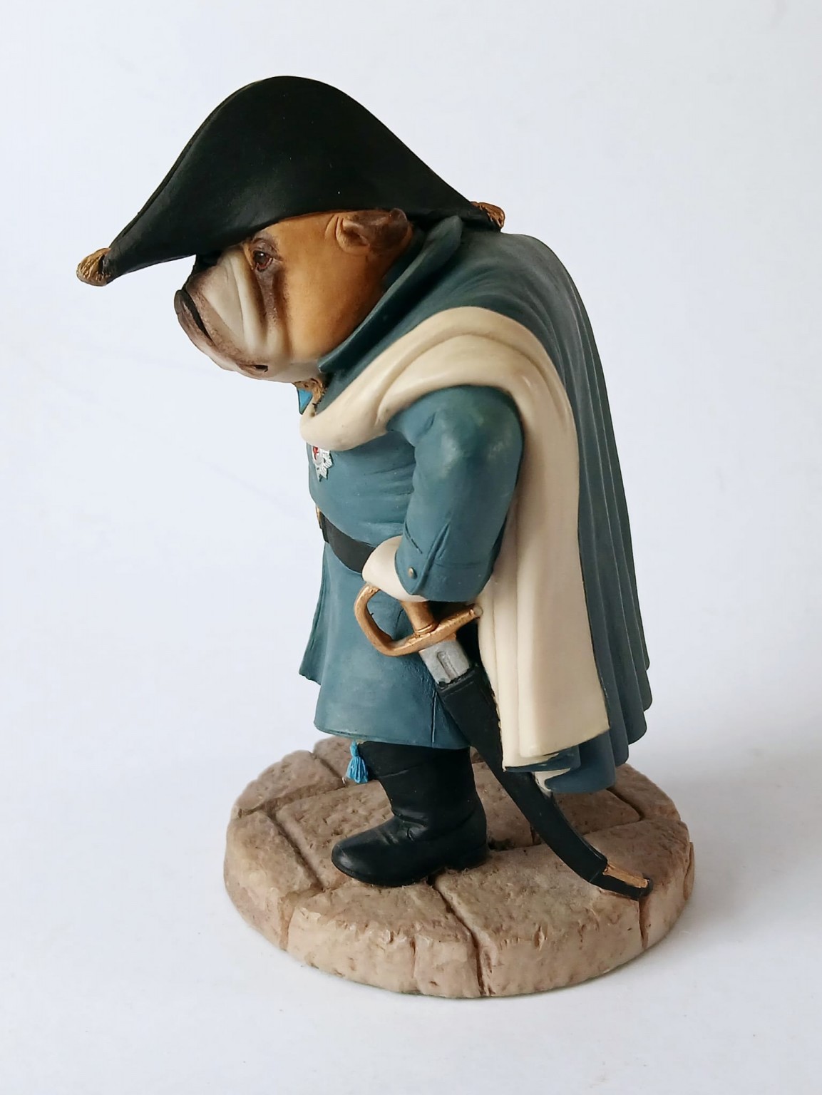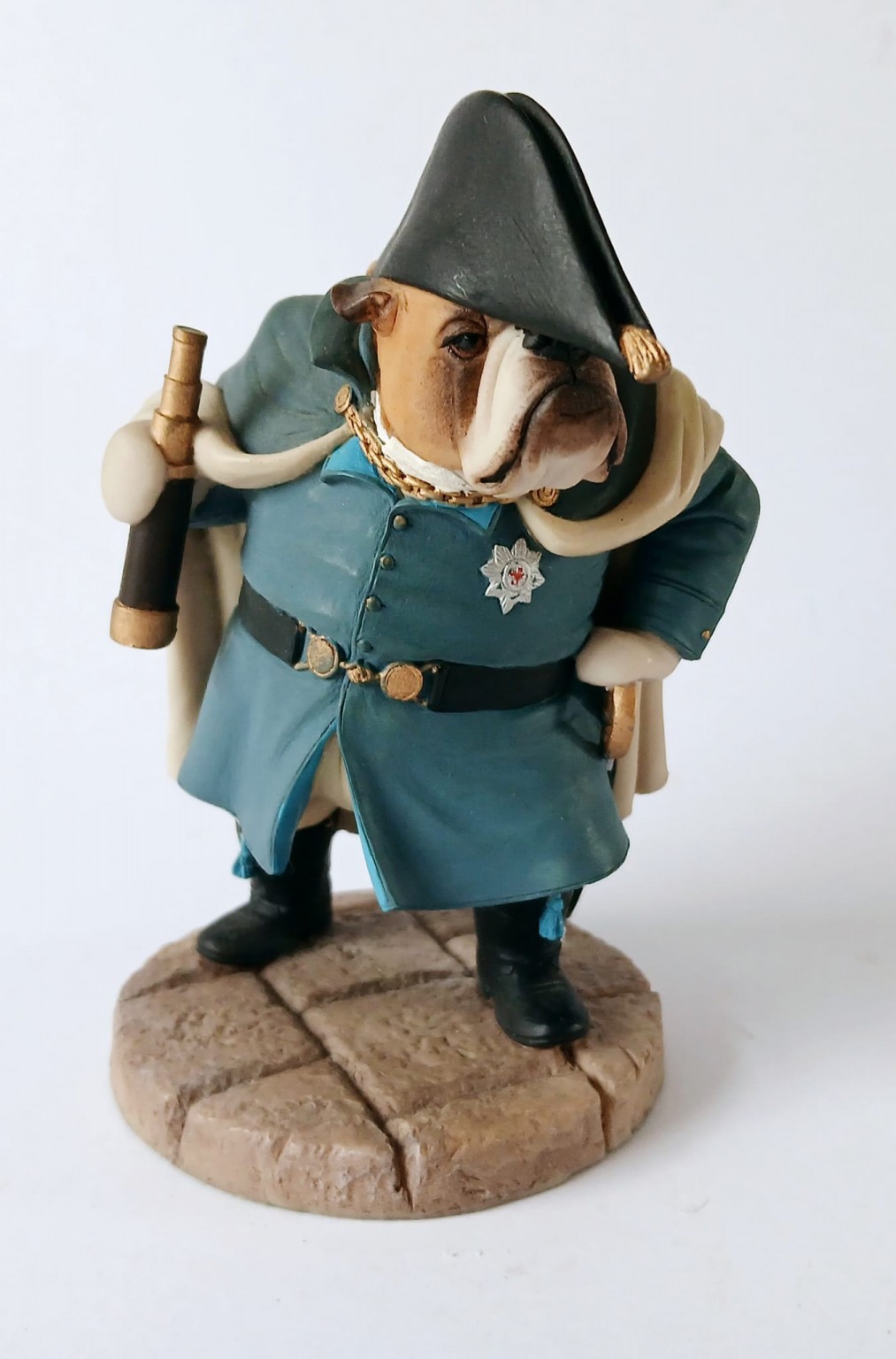 A Doggie People figurine of a Bulldog dressed as Wellington entitled 'Bulldog Wellington CC120' by Robert Harrop Designs.
