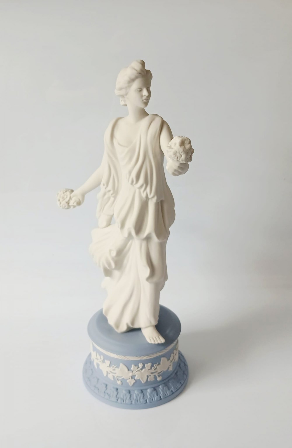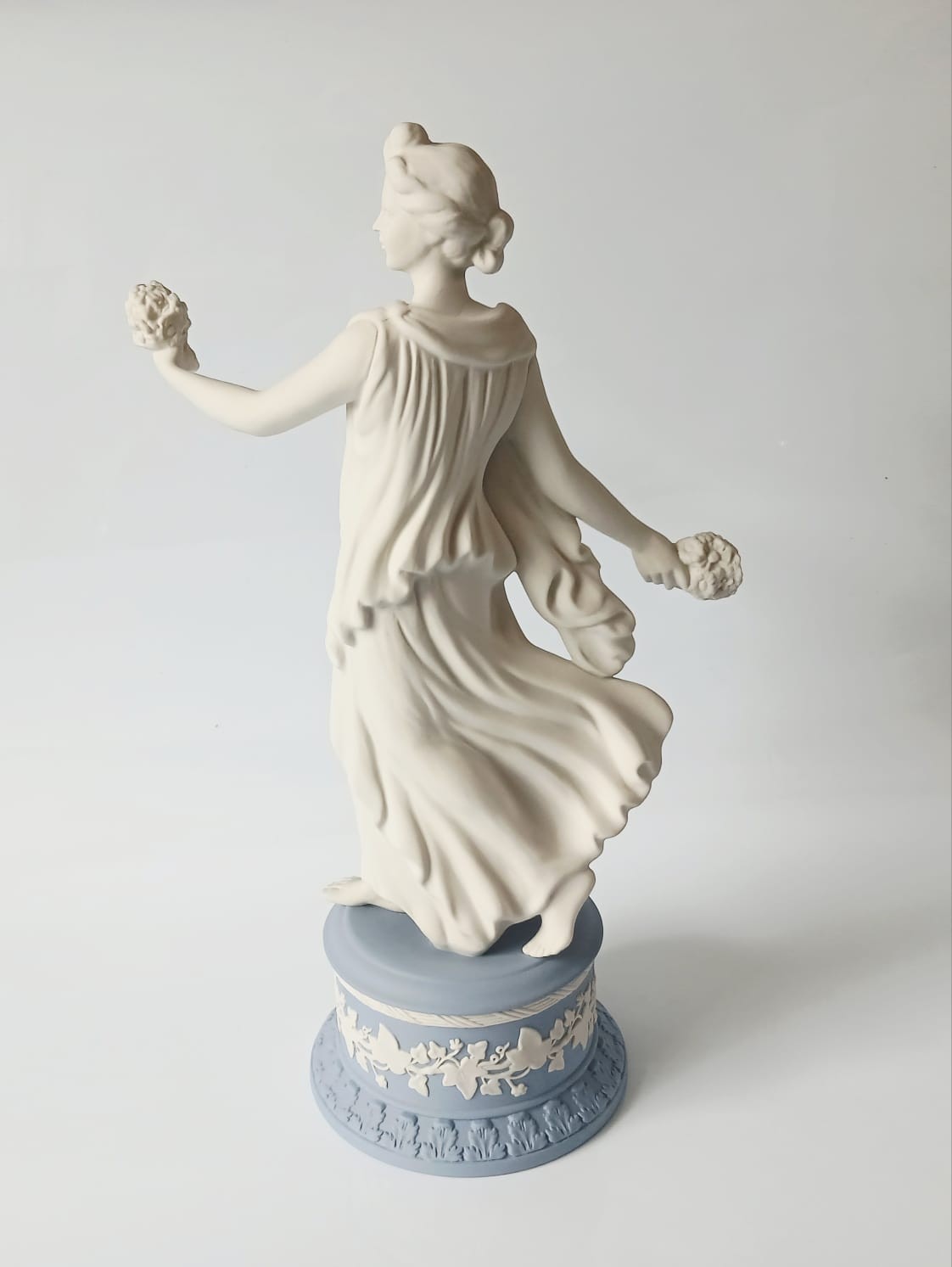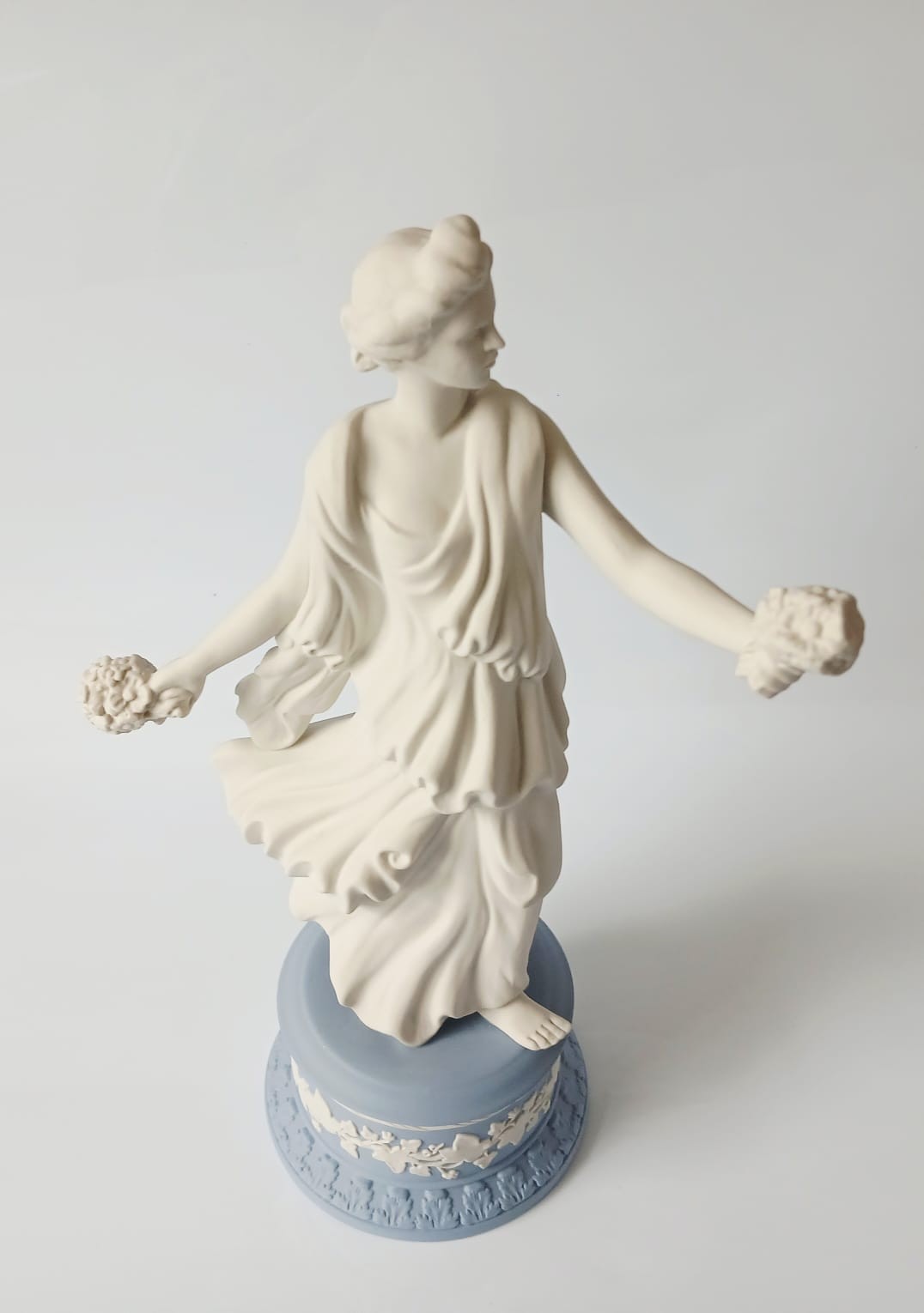 A Wedgwood white on pale blue jasperware figurine from the Dancing Hours Collection entitled ’Floral Posy'.