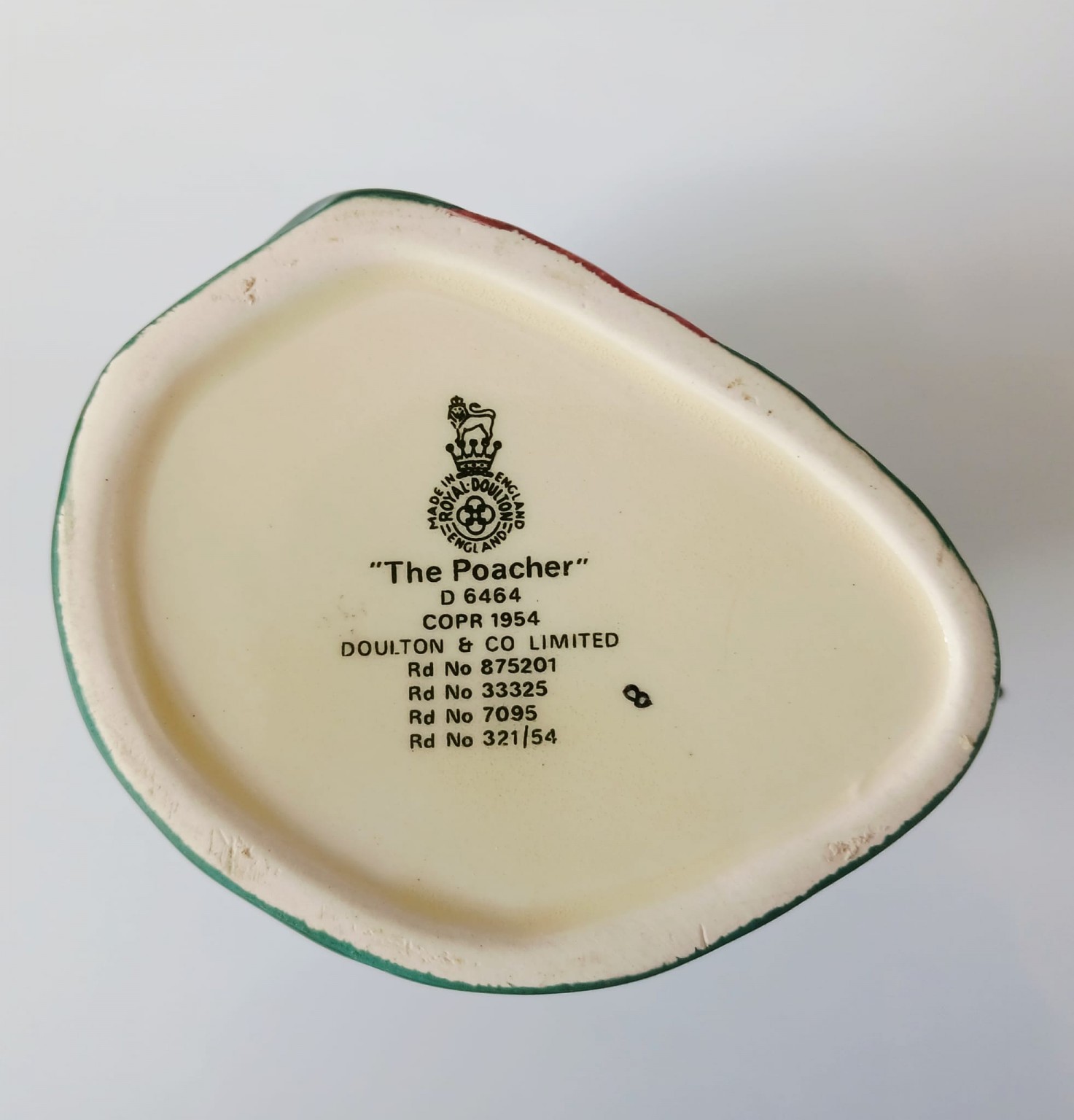 This small character jug stands approximately 4 inches tall and is stamped on the base Royal Doulton 'The Poacher' D6464.