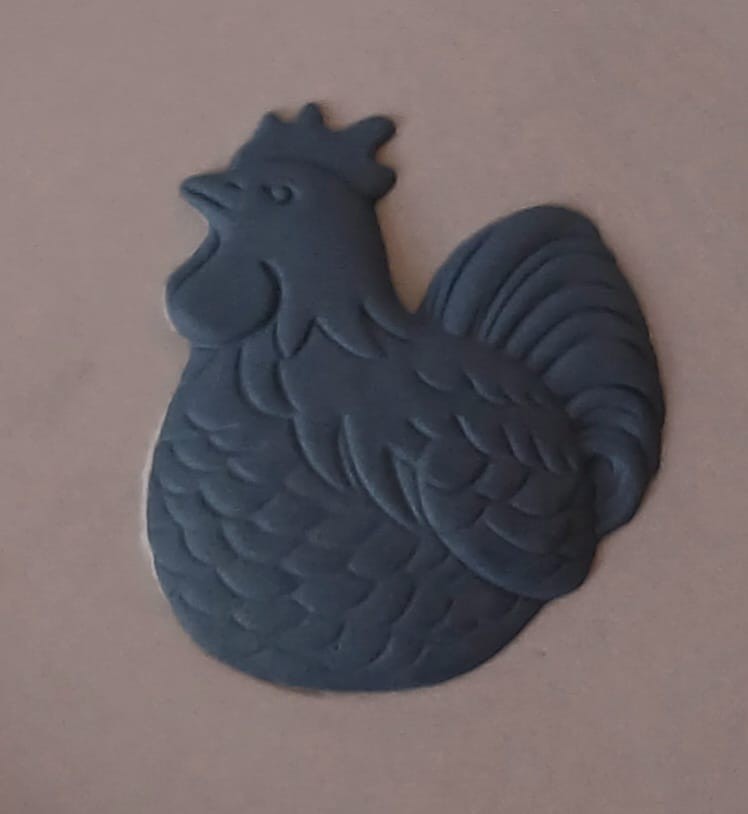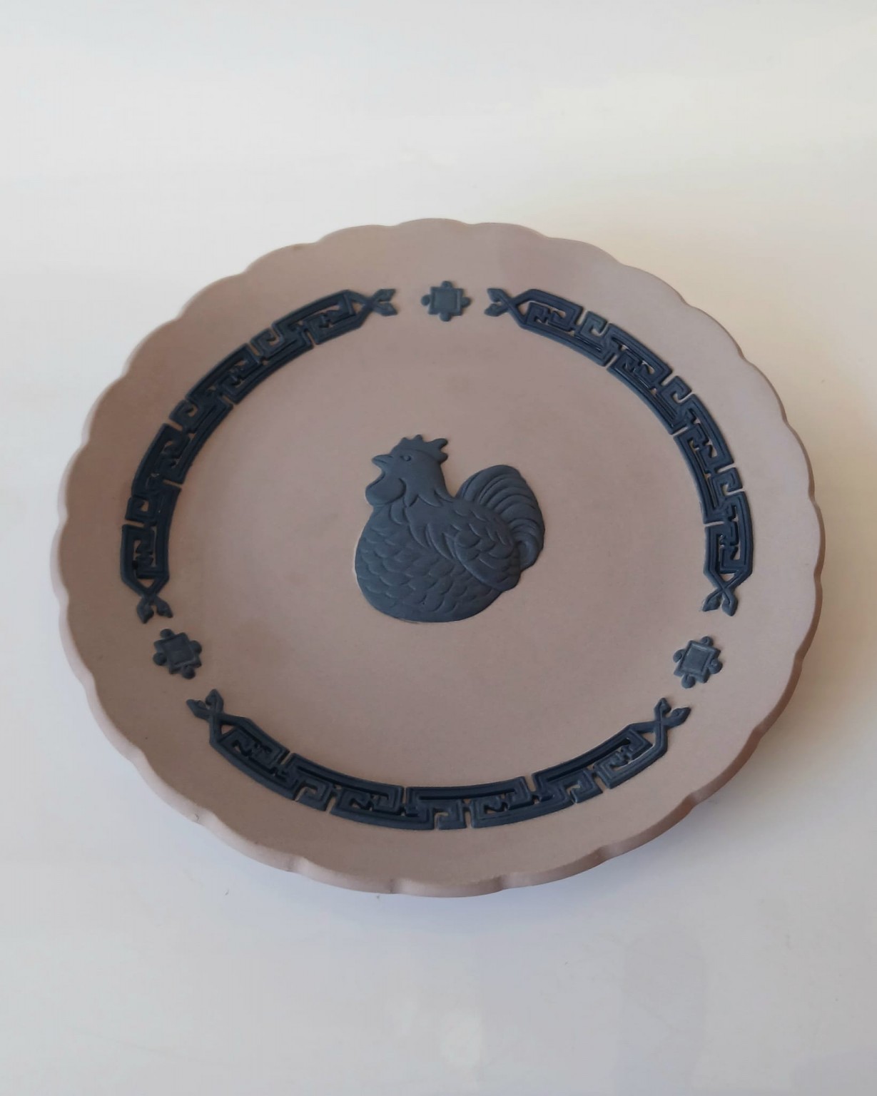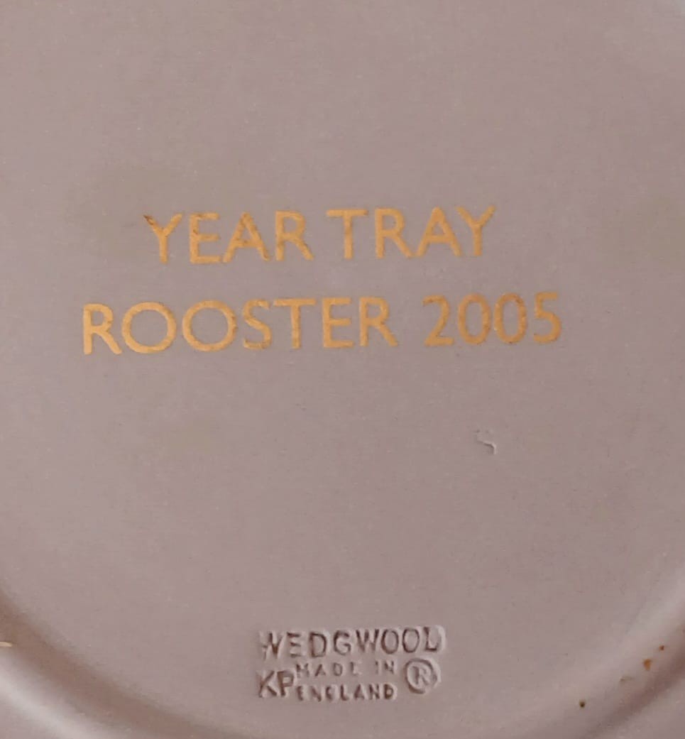 A Wedgwood lilac jasperware tray featuring a black bas-relief of a Rooster representing the Year of The Rooster in 2005.