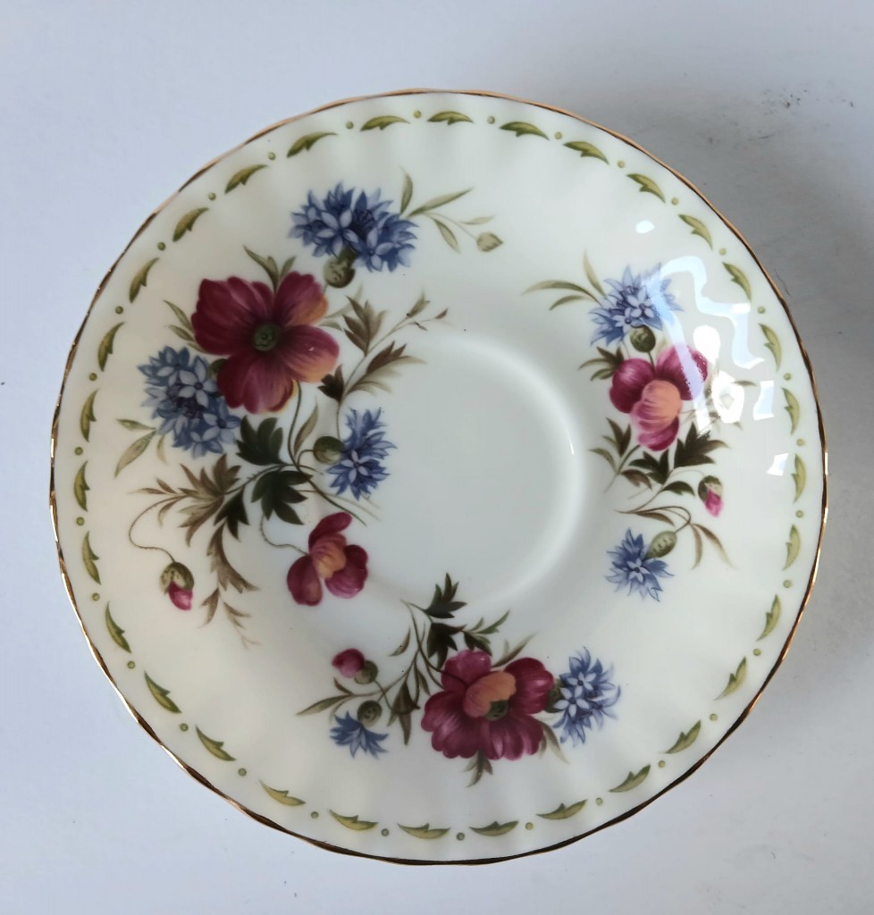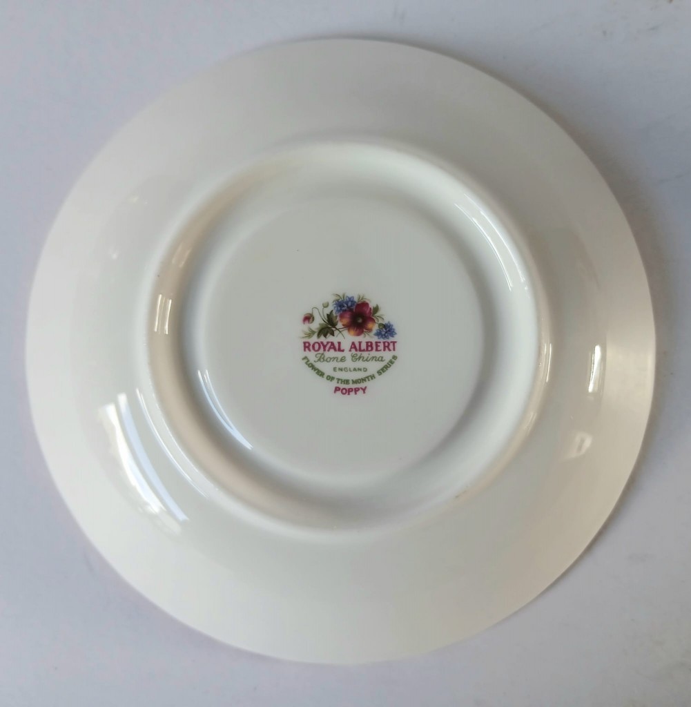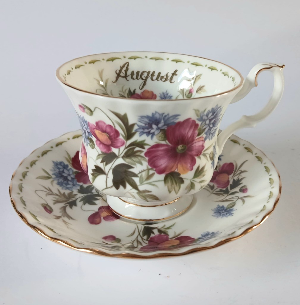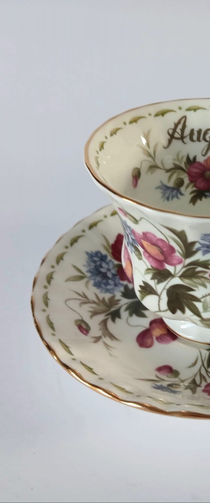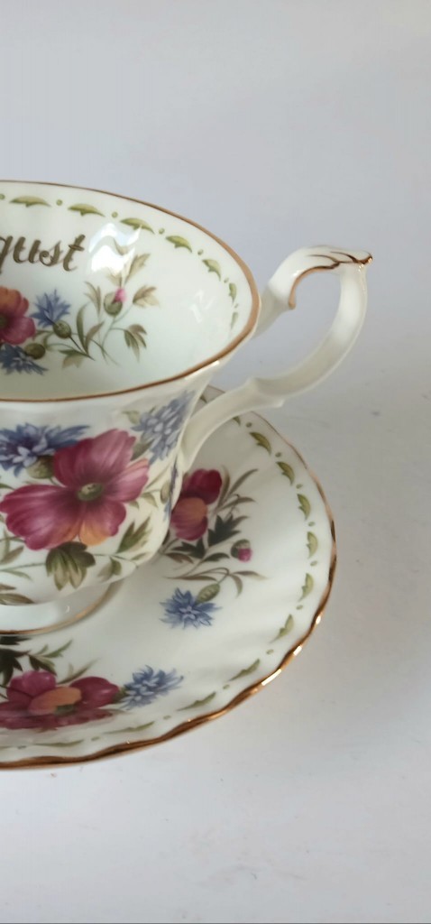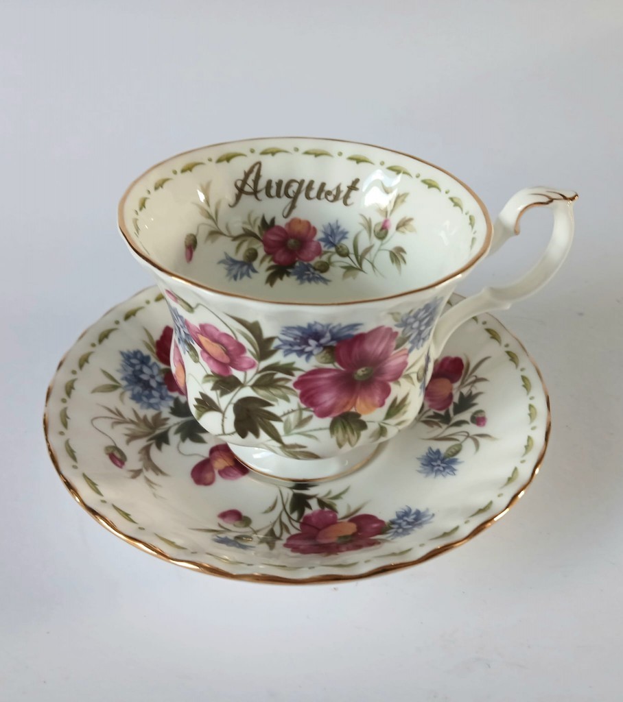 A very pretty tea cup and saucer from the Flower of the Month Series produced by Royal Albert featuring the month of August and the Poppy.