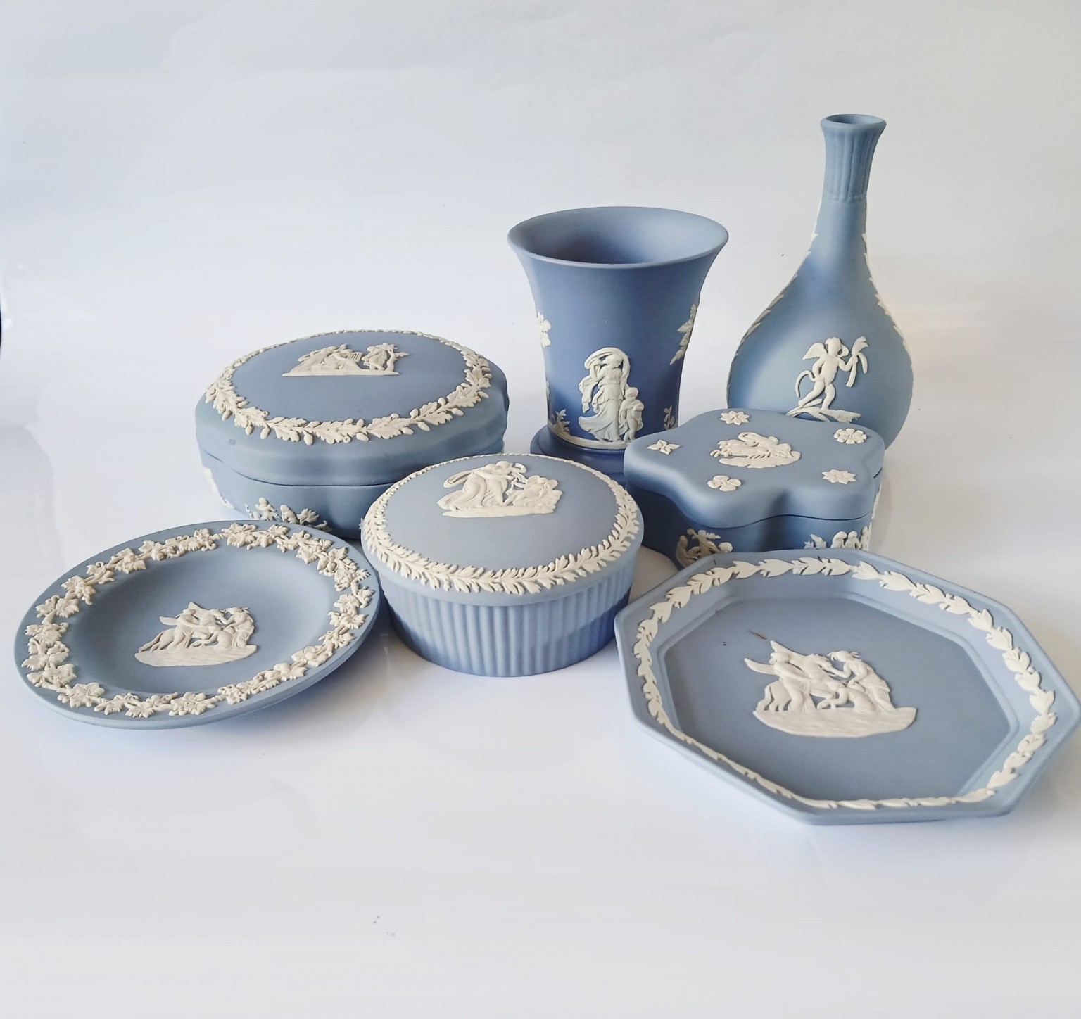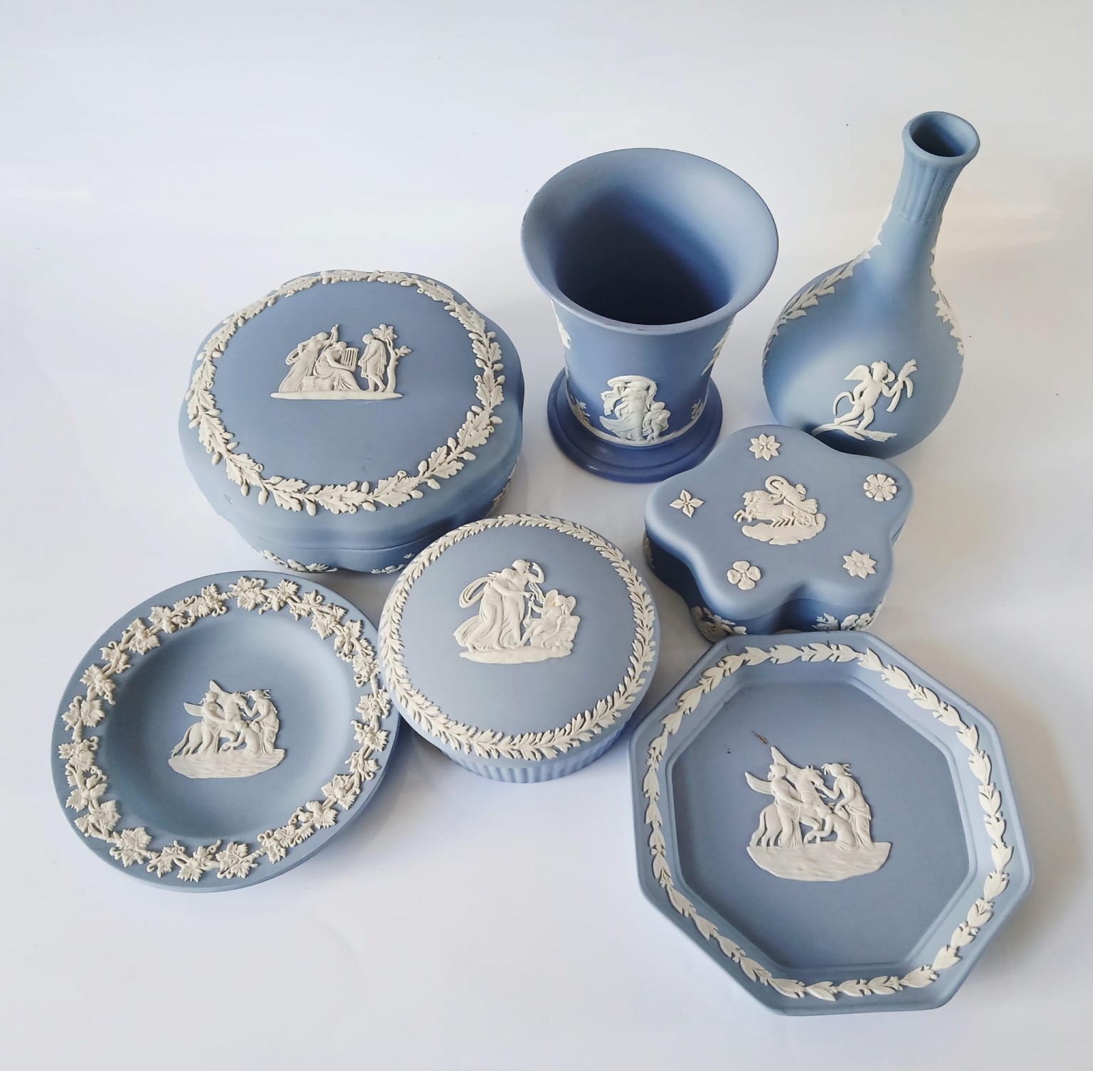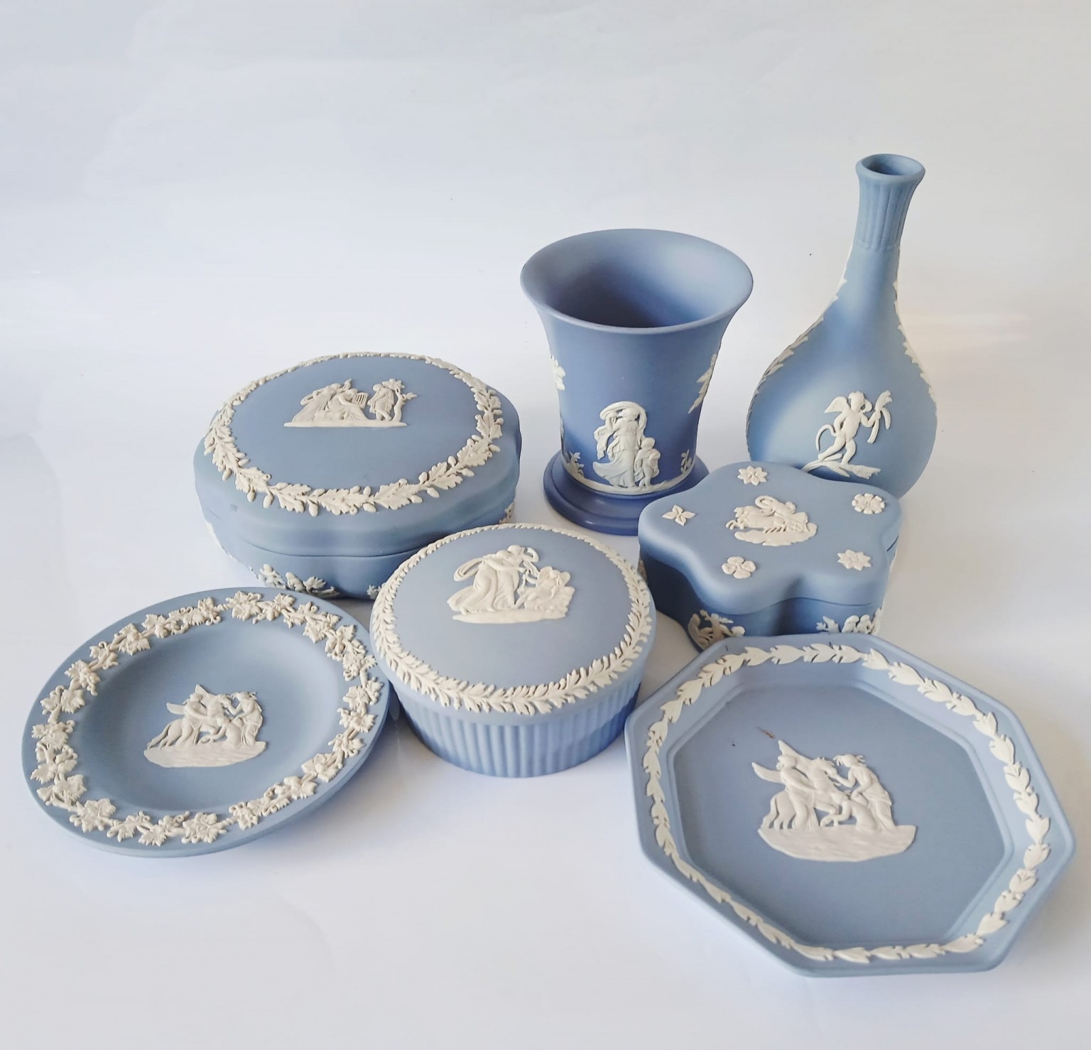 The collection has been previously owned but all six pieces of jasperware are in very good condition and all are first quality.